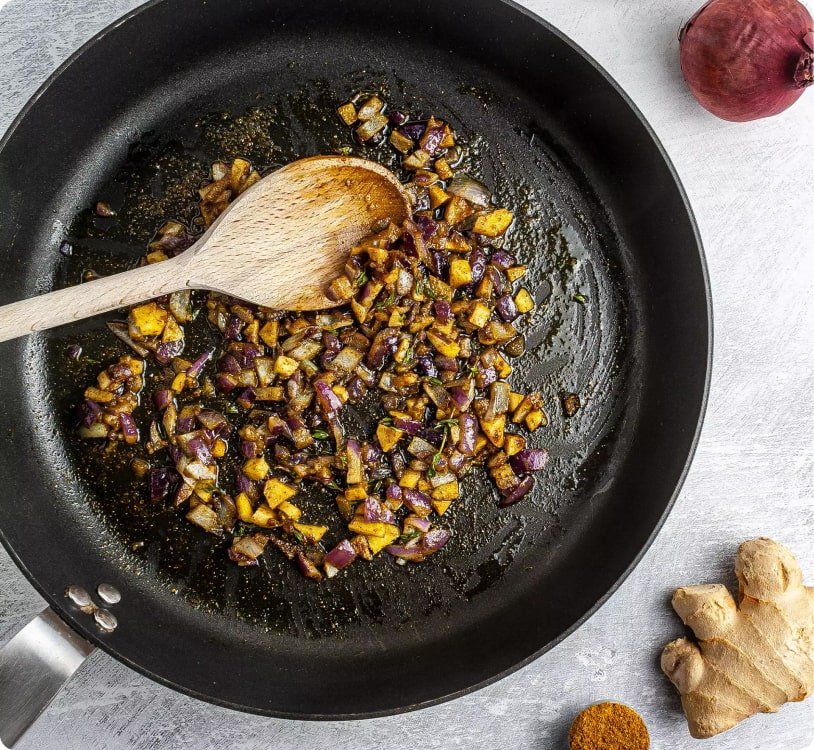But you can use plantains to follow a more traditional approach. Just know that the curry won’t be as sweet.